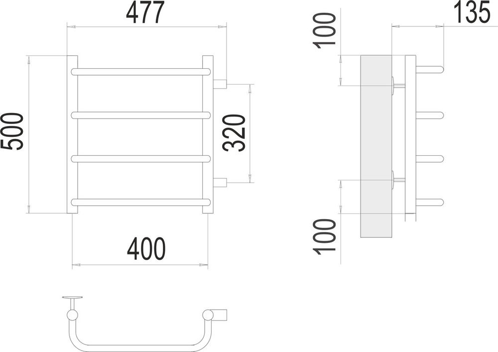 Полотенцесушитель водяной Terminus Стандарт 4670078530301, П4 400х500, ширина 47.7 см, высота 50 см, боковое подключение 32 см, хром