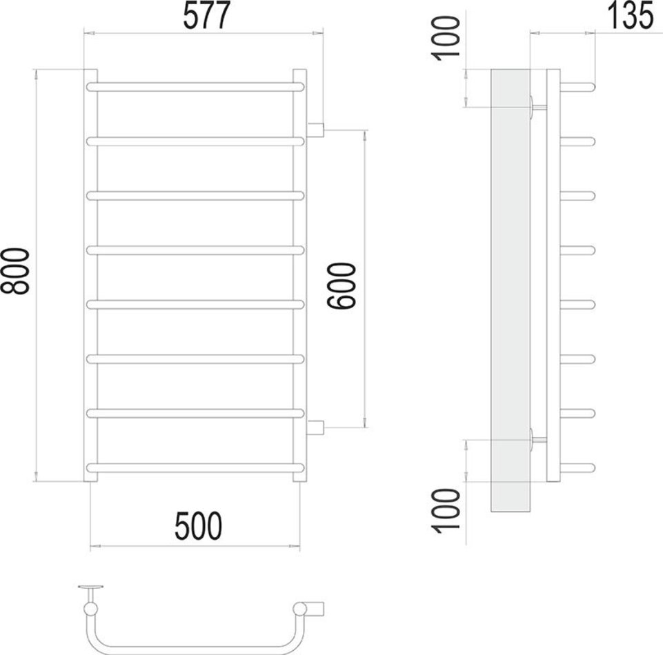 Полотенцесушитель водяной Terminus Стандарт 4670078530394, П8 500х800, ширина 57.7 см, высота 80 см, боковое подключение 60, хром