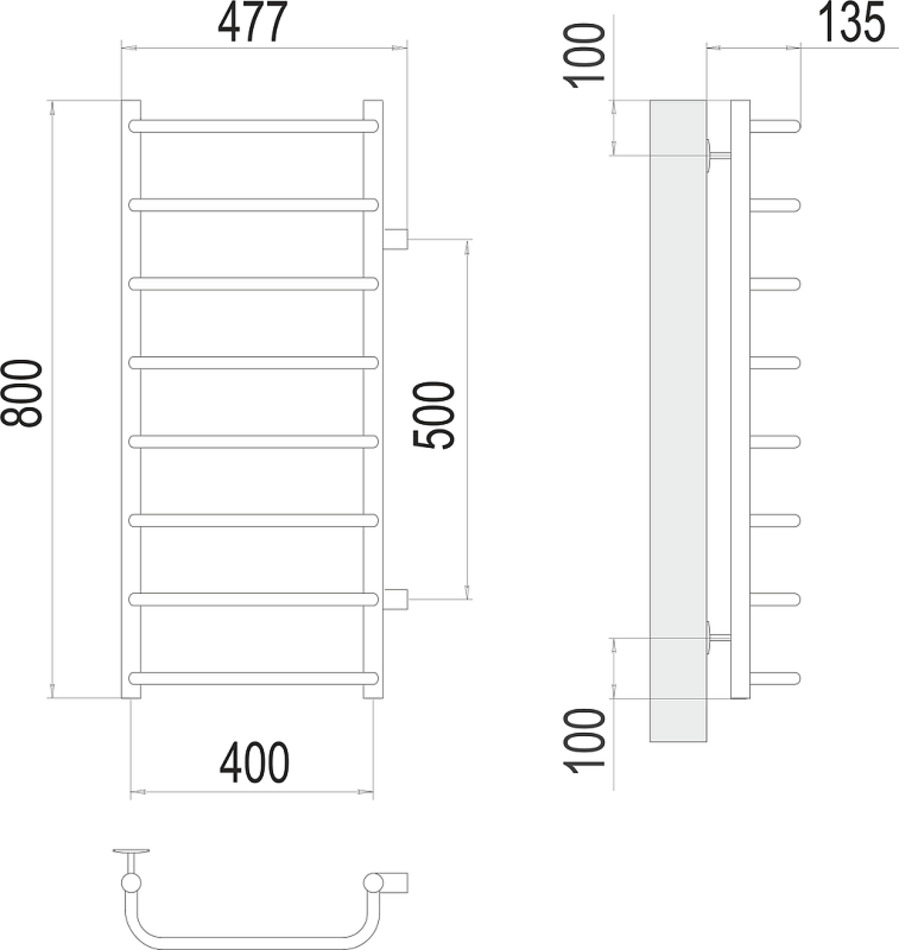 Полотенцесушитель водяной Terminus Стандарт П8 400х800 бп500, ширина 48 см, высота 80 см, боковое подключение 50 см, цвет нержавеющая сталь