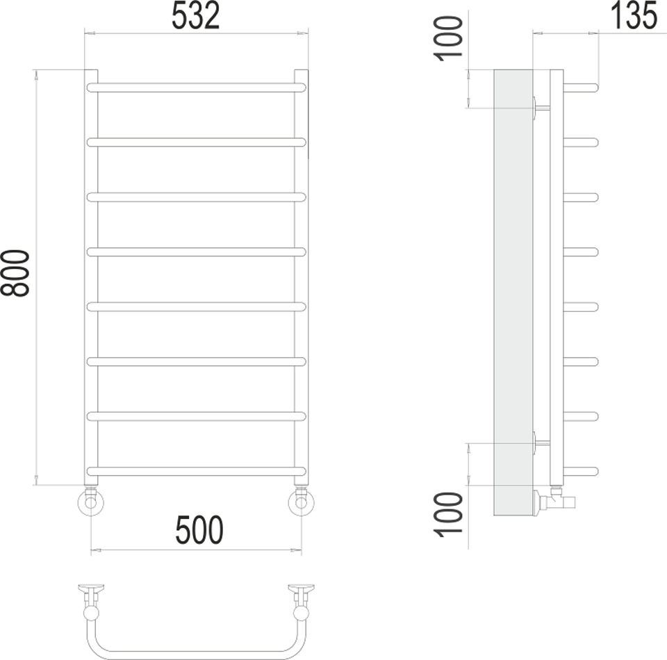 Полотенцесушитель водяной Terminus Стандарт П8 500х800, ширина 53 см, высота 80 см, цвет нержавеющая сталь