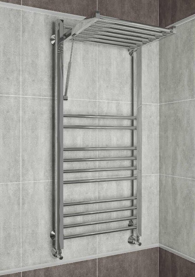 Модель в современном стиле, разработанная совместно с итальянским дизайнером Антонио Руджеро. Из особенностей модели стоит отметить его многофункциональность: устройство не только поможет просушить изделия из текстиля, но и осуществит дополнительный обогрев помещения. Кроме того, конструкция данной модели оснащена поднимающейся полкой, на которой удобно разместить, например, полотенца. Водяной полотенцесушитель Валенсия люкс – изящная модель, которая украсит интерьер ванной комнаты, поддержит идеальную температуру в помещении.