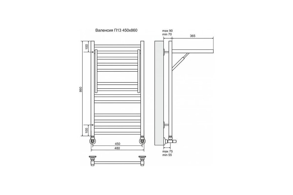 Полотенцесушитель водяной Terminus Валенсия П13 450x860, ширина 48 см, высота 86 см, хром
