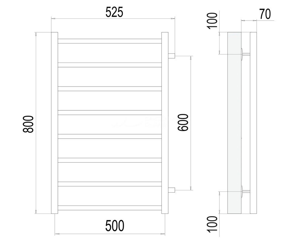 Полотенцесушитель водяной Terminus Вега П8 500x800, ширина 52.5 см, высота 80.6 см, боковое подключение 60, хром