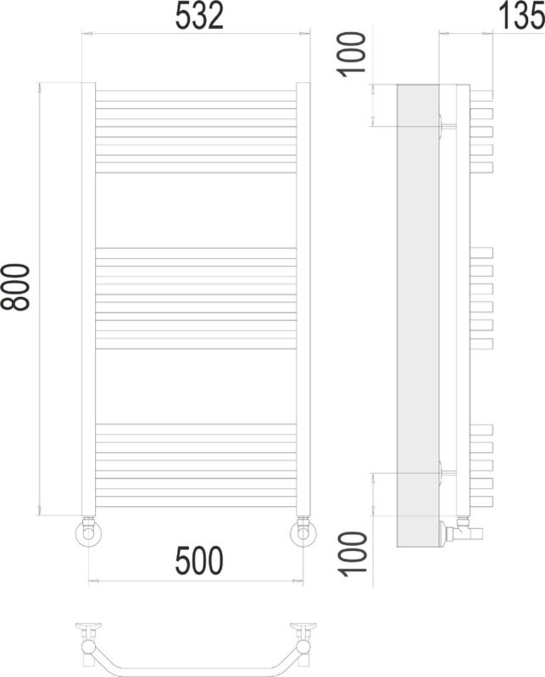 Полотенцесушитель водяной Terminus Виктория 4670078529534, П16 500х800, ширина 53.2 см, высота 80 см, хром