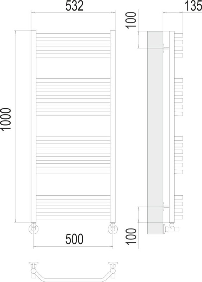 Полотенцесушитель водяной Terminus Виктория 4670078529541, П20 500х1000, ширина 53.2 см, высота 100 см, хром