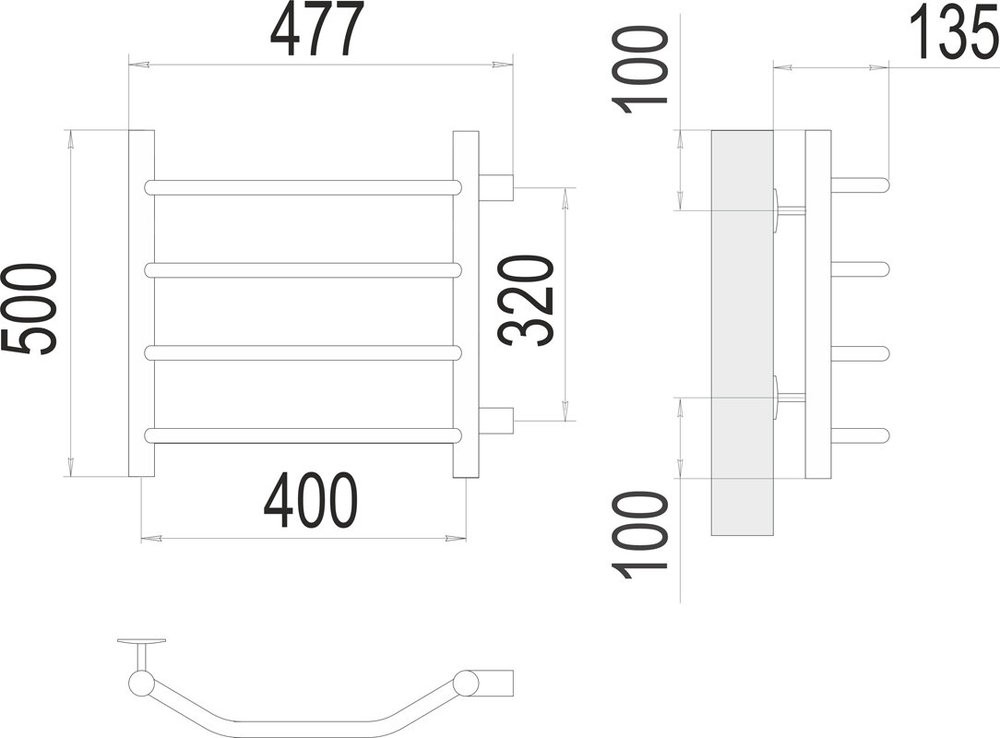 Полотенцесушитель водяной Terminus Виктория 4670078530042, П4 400х500, ширина 47.7 см, высота 50 см, боковое подключение 32 см, хром
