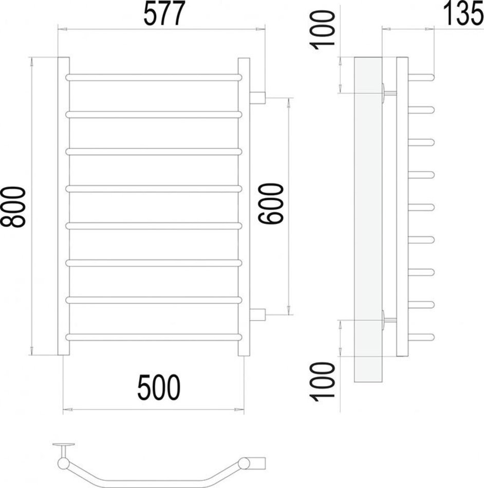 Полотенцесушитель водяной Terminus Виктория 4670078530127, П8 500х800, ширина 50 см, высота 80 см, боковое подключение 60 см, хром
