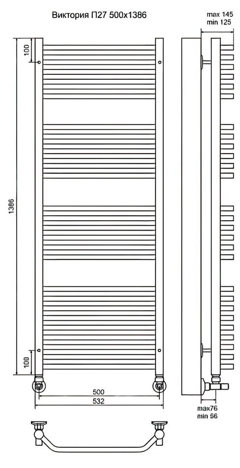 Полотенцесушитель водяной Terminus Виктория П27 500x1386, ширина 53.2 см, высота 138.6 см, хром