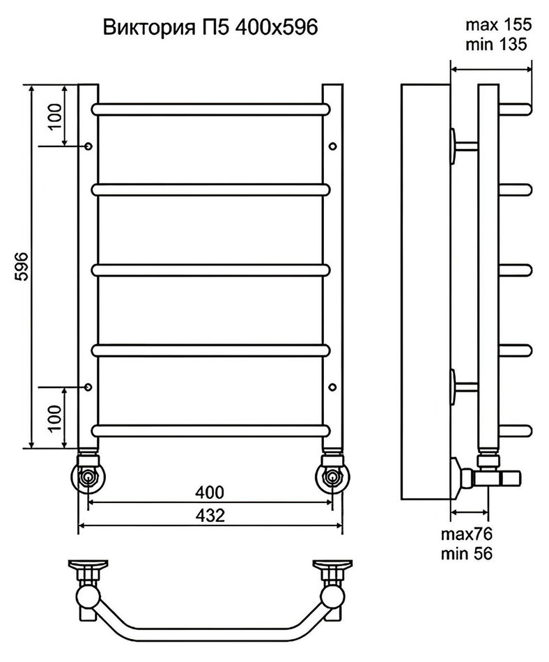 Полотенцесушитель водяной Terminus Виктория П5 400x596, ширина 43.2 см, высота 59.6 см, хром