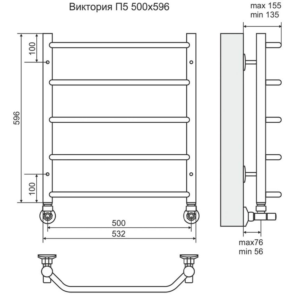 Полотенцесушитель водяной Terminus Виктория П5 500x596, ширина 53.2 см, высота 59.6 см, хром