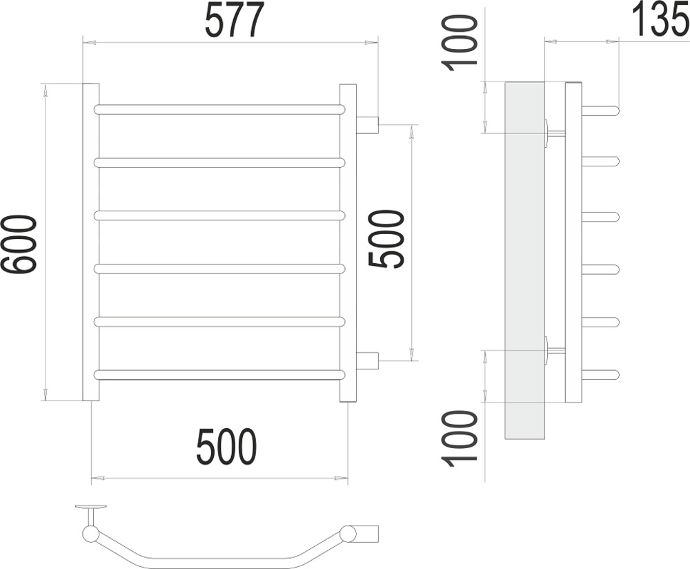 Полотенцесушитель водяной Terminus Виктория П6 500х600 бп500, ширина 57 см, высота 60 см, боковое подключение 50 см, цвет нержавеющая сталь