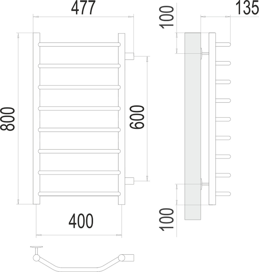 Полотенцесушитель водяной Terminus Виктория П8 400х800 бп600, ширина 47 см, высота 80 см, боковое подключение 60 см, цвет нержавеющая сталь