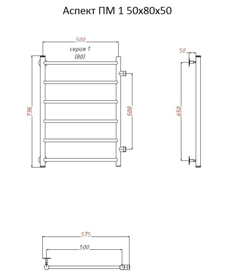 Полотенцесушитель водяной Тругор Аспект ПМ 1 50 х 80 x 50 (ЛЦ6), ширина 57.5 см, высота 73.6 см, хром