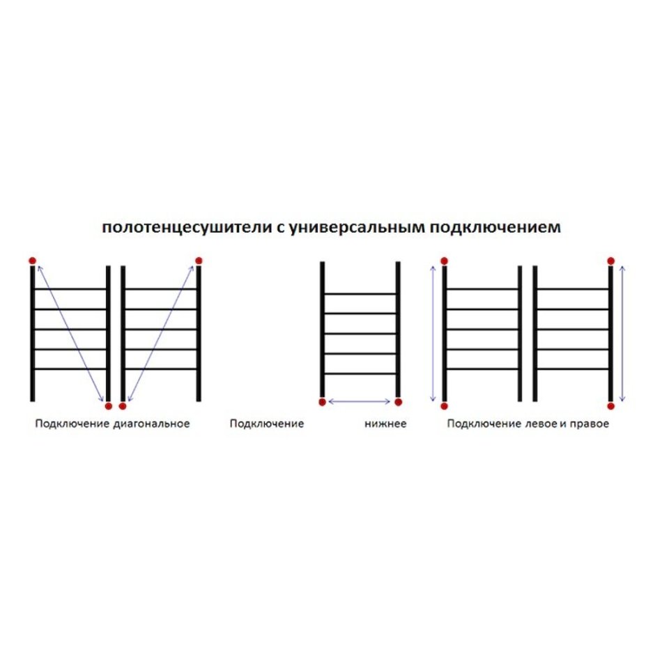 Комплектация: полотенцесушитель, комплект для подключения "НП", паспорт изделия.