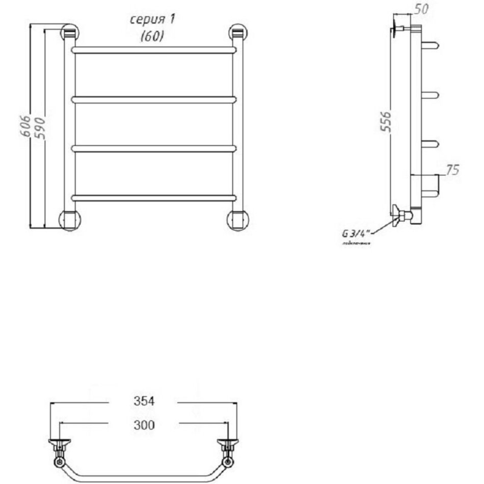 Полотенцесушитель водяной Тругор Браво НП 1 60 х 30 (ЛЦ4), ширина 35.4 см, высота 60.6 см, хром, Браво1/нп6030