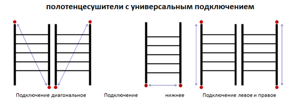 - Направление подключения: левое, правое, нижнее, диагональное