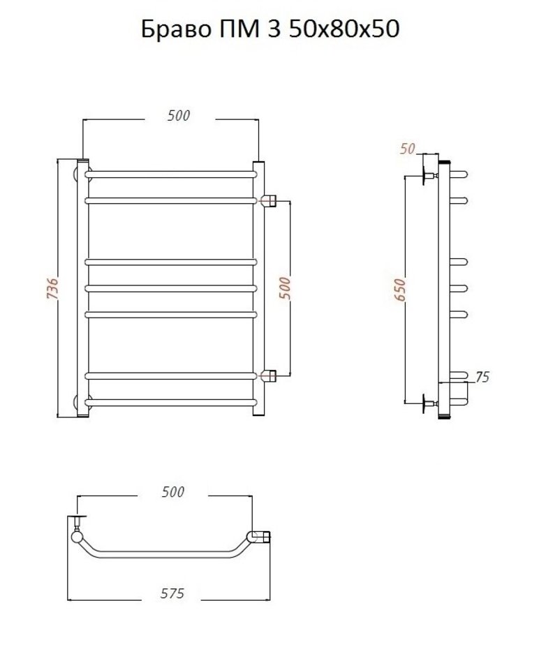 Полотенцесушитель водяной Тругор Браво ПМ 3 50 х 80 x 50 (ЛЦ4), ширина 57.5 см, высота 73.6 см, хром
