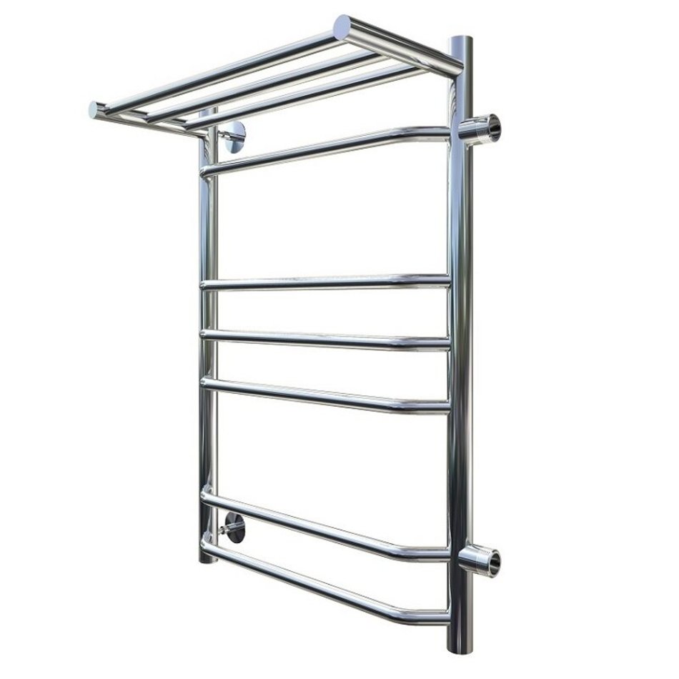 - Полотенцесушитель типа лесенка с боковым подключением трапецевидными вставками с полкой