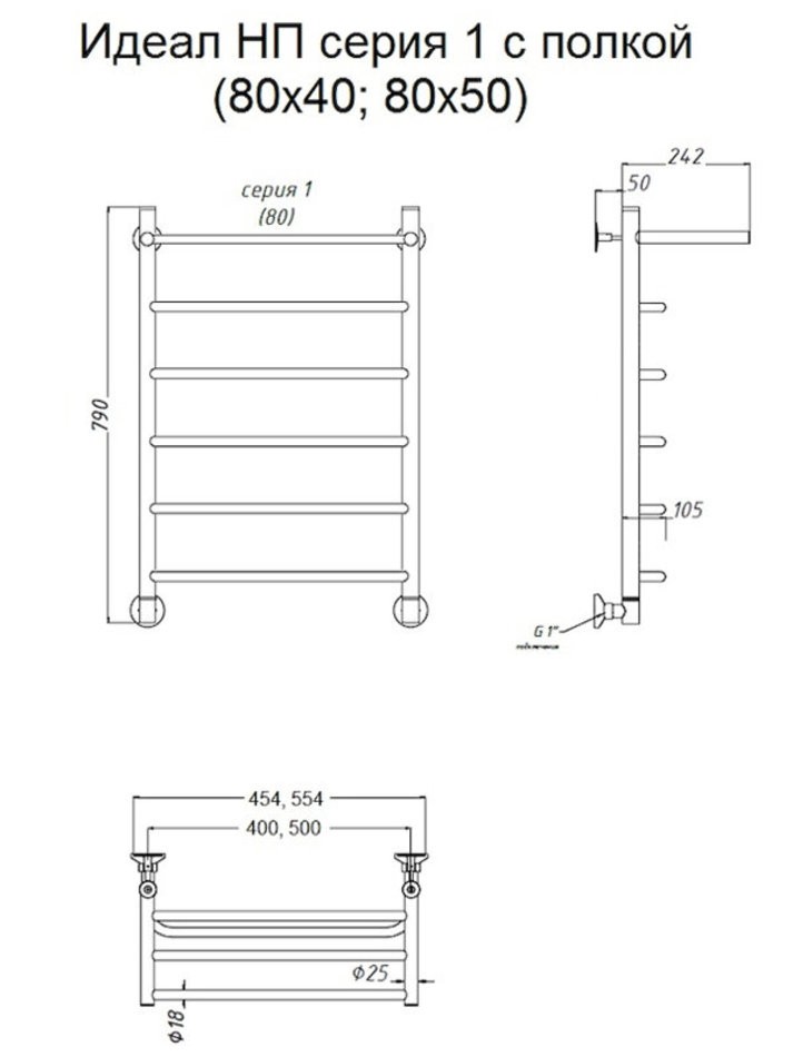 Полотенцесушитель водяной Тругор Идеал НП 1 П 80 х 50 (ЛЦ5), ширина 55.4 см, высота 80.6 см, хром
