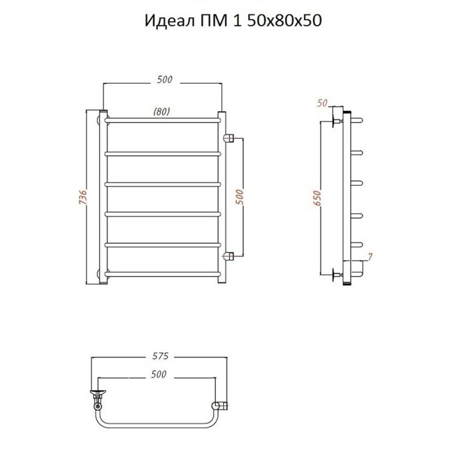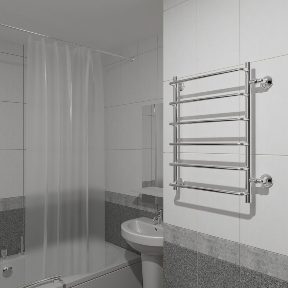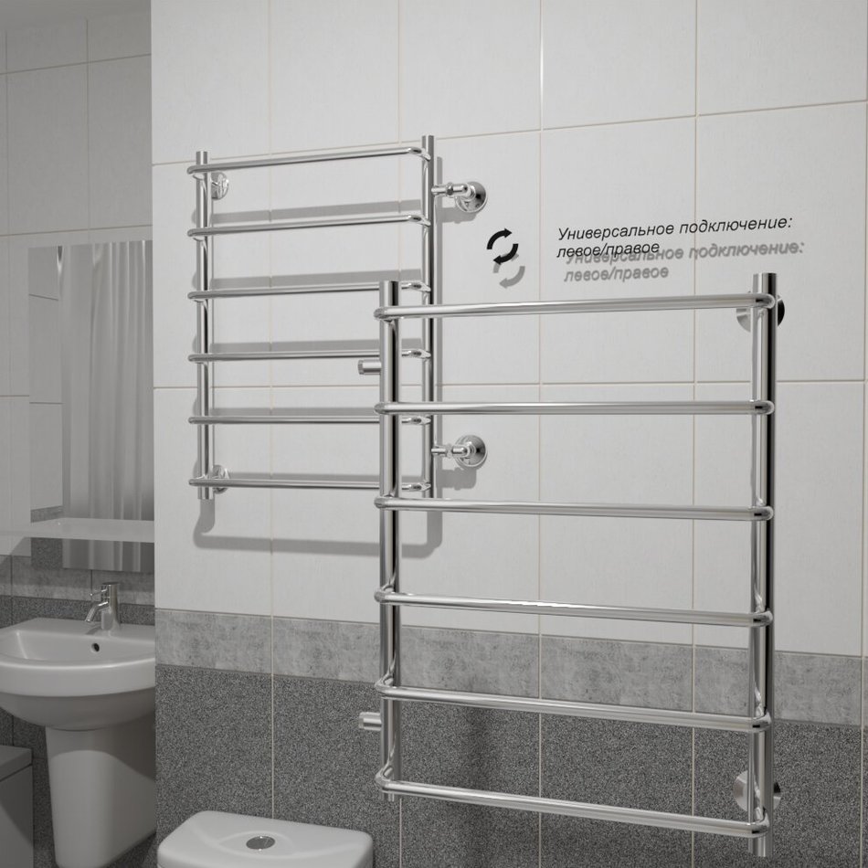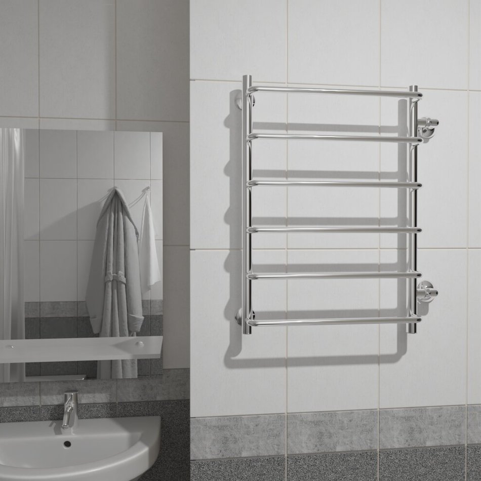 Полотенцесушитель водяной Тругор Идеал ПМ серия 1, Идеал1/ПМ508050, ширина 50 см, высота 80 см, подключение боковое универсальное 50 см, хром