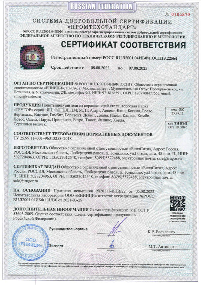 Комплектация: полотенцесушитель, паспорт изделия, телескопический держатель - 2 шт., гарантийный талон.