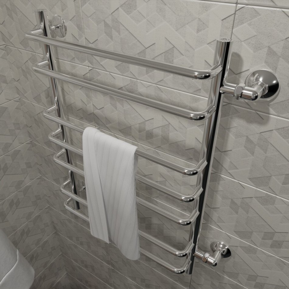 Полотенцесушитель водяной Тругор Идеал ПМ серия 3, Идеал3/ПМ508050, ширина 50 см, высота 80 см, подключение боковое универсальное 50 см, хром
