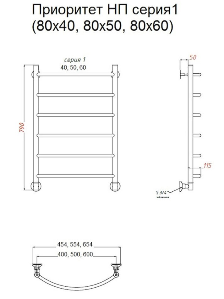 Полотенцесушитель водяной Тругор Приоритет НП 1 80 x 50 (ЛЦ2), ширина 55.4 см, высота 80.6 см, хром
