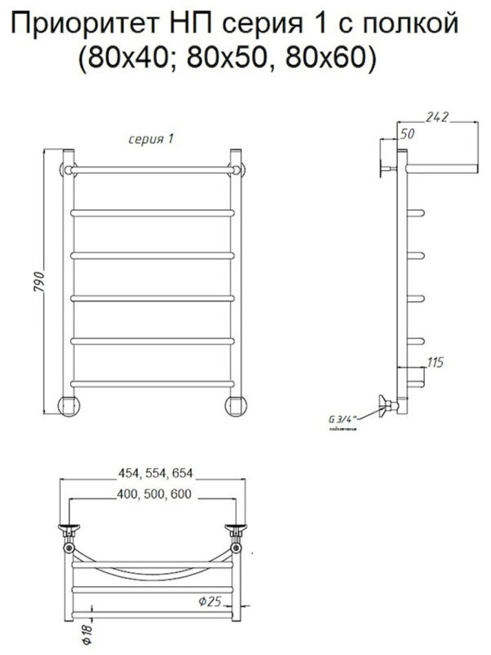 Полотенцесушитель водяной Тругор Приоритет НП 1 П 80 x 50 (ЛЦ2), ширина 55.4 см, высота 80.6 см, хром