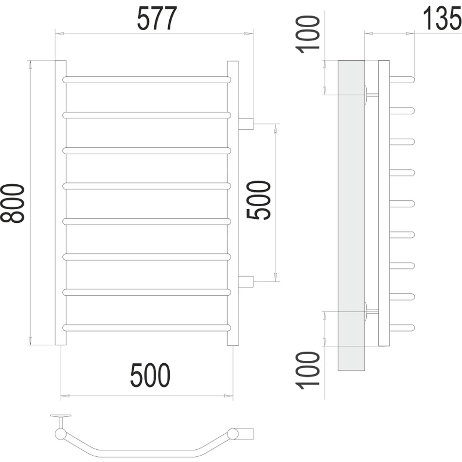 Полотенцесушитель водяной Виктория 4670078530110, П8 500х800, ширина 50 см, высота 80 см, боковое подключение 50 см, хром