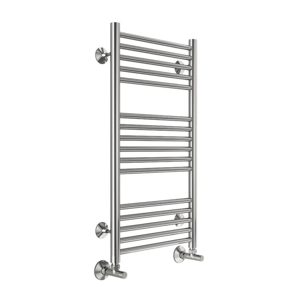 Теплой и комфортной ванную комнату сделает полотенцесушитель «Аврора» от российского производителя Terminus. Лесенка с 16 сгруппированными перекладинами отличается повышенной прочностью и великолепной теплоотдачей, что обусловлено применением для изготовления нержавеющей стали AISI 304 с пониженным содержанием углерода. На гладкой поверхности, обработанной по технологии электролитно-плазменной полировки, можно сушить вещи из любого материала, не опасаясь появления затяжек и зацепок. Равномерному распределению теплоносителя – воды из системы горячего водоснабжения – способствует кран Маевского.