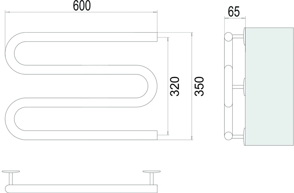 Полотенцесушитель электрический Terminus М-образный, 4620768883927, ширина 60 см, высота 35 см, подключение справа, цвет хром