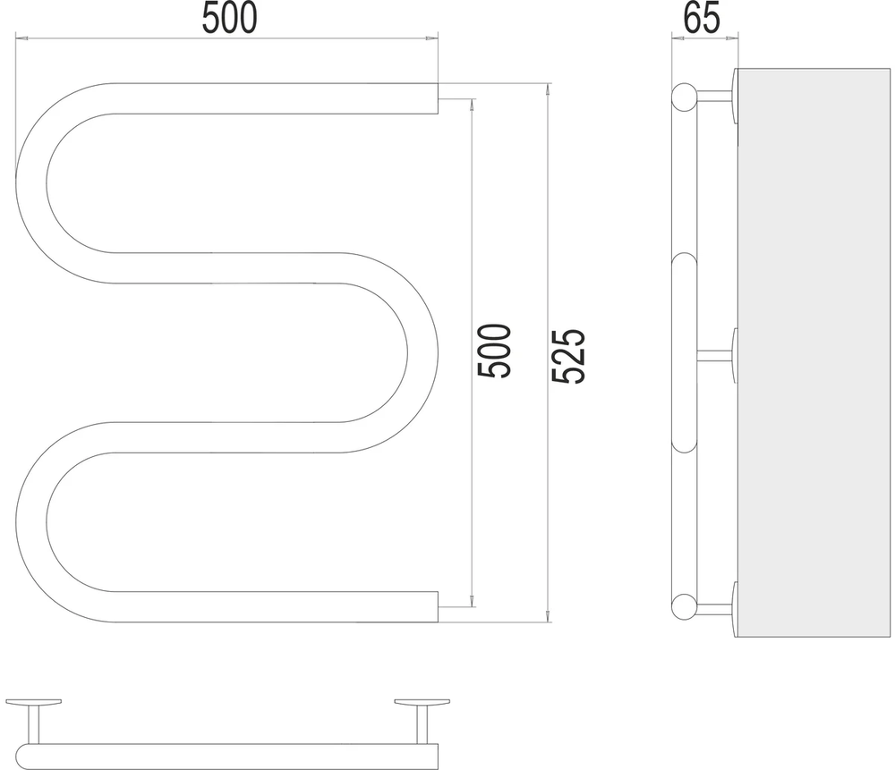 Полотенцесушитель электрический Terminus M-образный 500х500, ширина 50 см, высота 52.5 см, 4620768883910