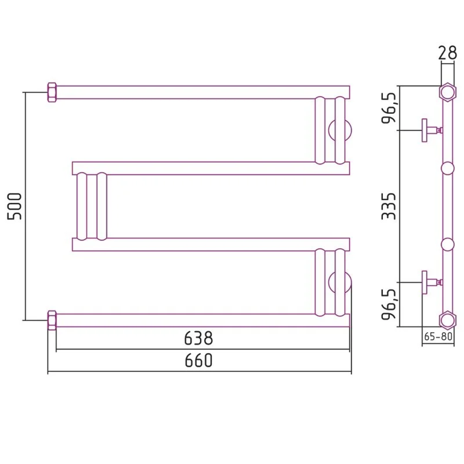 Полотенцесушитель водяной Сунержа High-Tech M+, ширина 65 см, высота 50 см, боковое подключение 50 см, цвет хром, 00-4050-5065