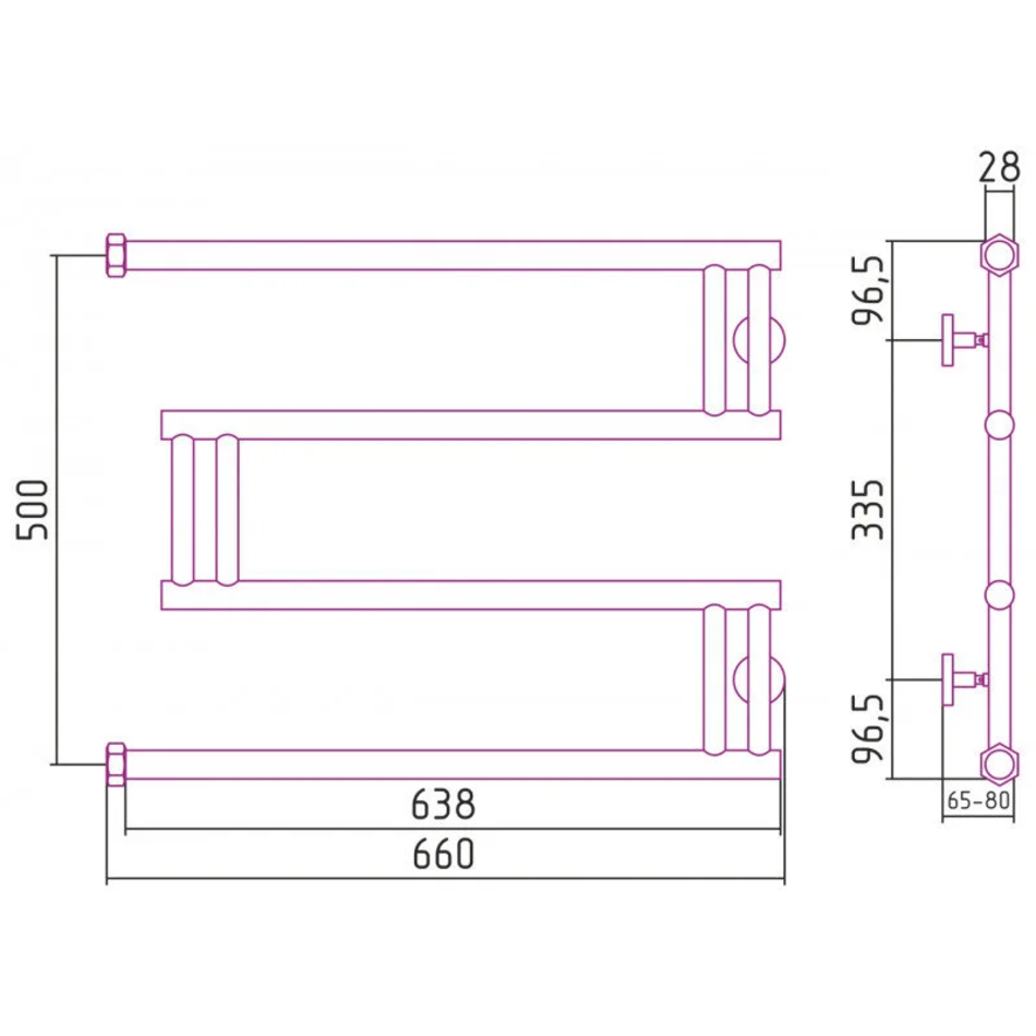 Полотенцесушитель водяной Сунержа High-Tech M+, высота 50 см, ширина 65 см, боковое подключение 50 см, цвет черный матовый, 31-4050-5065