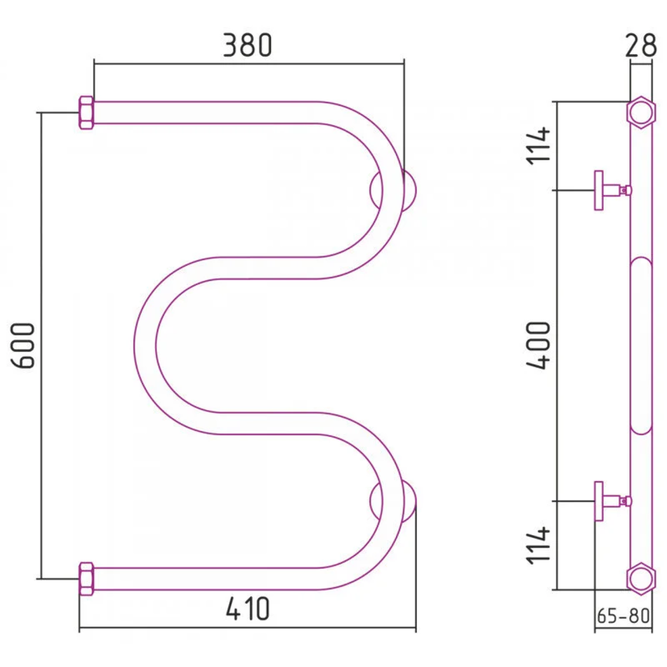 Полотенцесушитель водяной Сунержа М-образный 30-0007-6040, высота 60 см, ширина 40 см, боковое подключение 60 см, цвет белый матовый