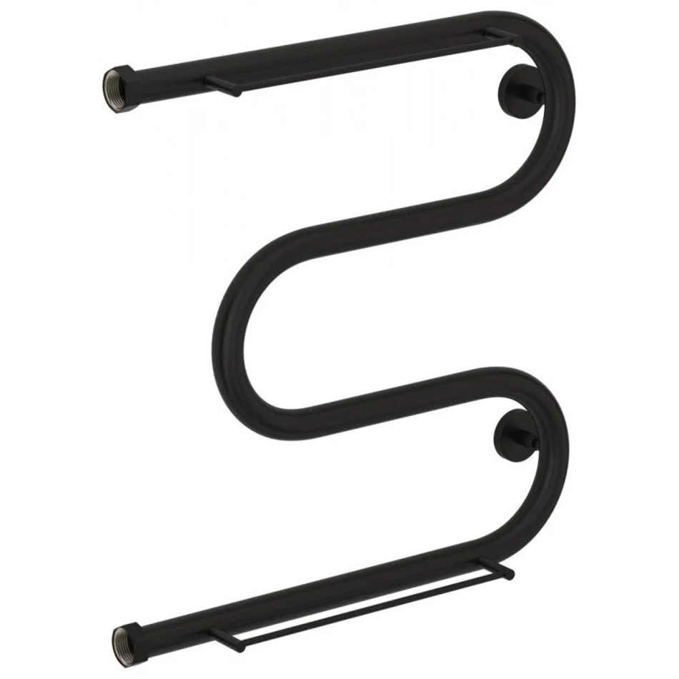 Полотенцесушитель водяной Сунержа М-образный+ 31-4008-5050, высота 50 см, ширина 50 см, боковое подключение 50 см, с 2 полками, цвет матовый черный