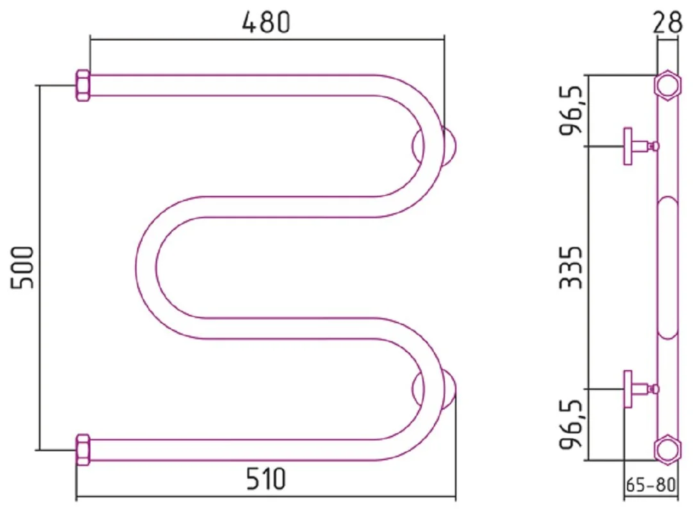Полотенцесушитель водяной Сунержа М-образный 50 x 50 см, 00-0007-5050, хром