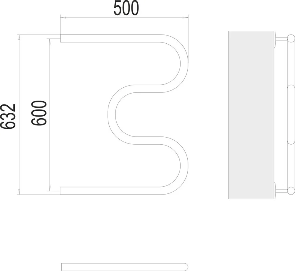 Полотенцесушитель водяной Terminus М 4620768881411, 600х500 с полкой, ширина 50 см, высота 63.2 см, боковое подключение 60 см, бесшовная труба, хром