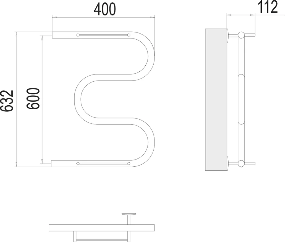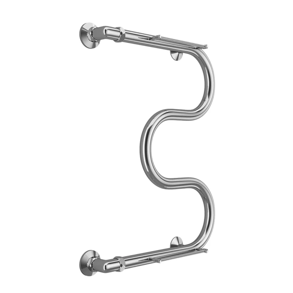Полотенцесушитель водяной Terminus М-образный 4620768880377, ширина 40 см, высота 63 см, боковое подключение 60 см, 1 дюйм, с полкой, цвет нержавеющая сталь