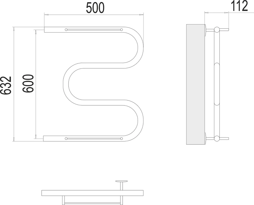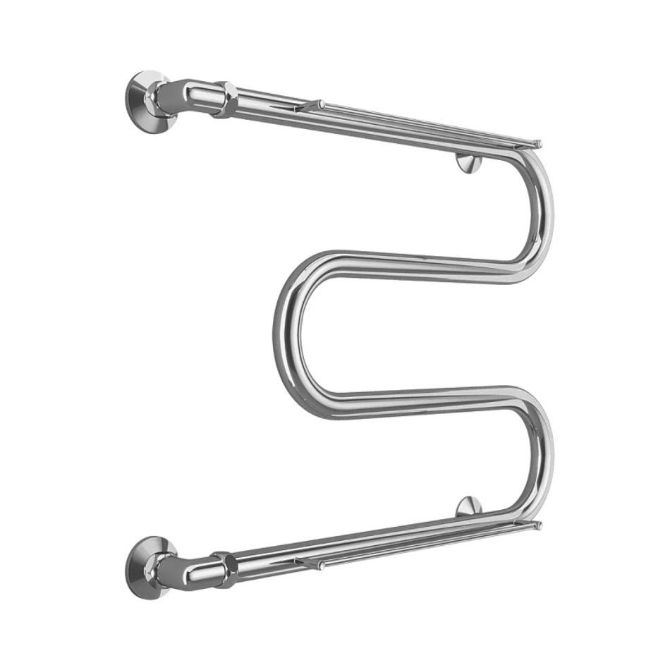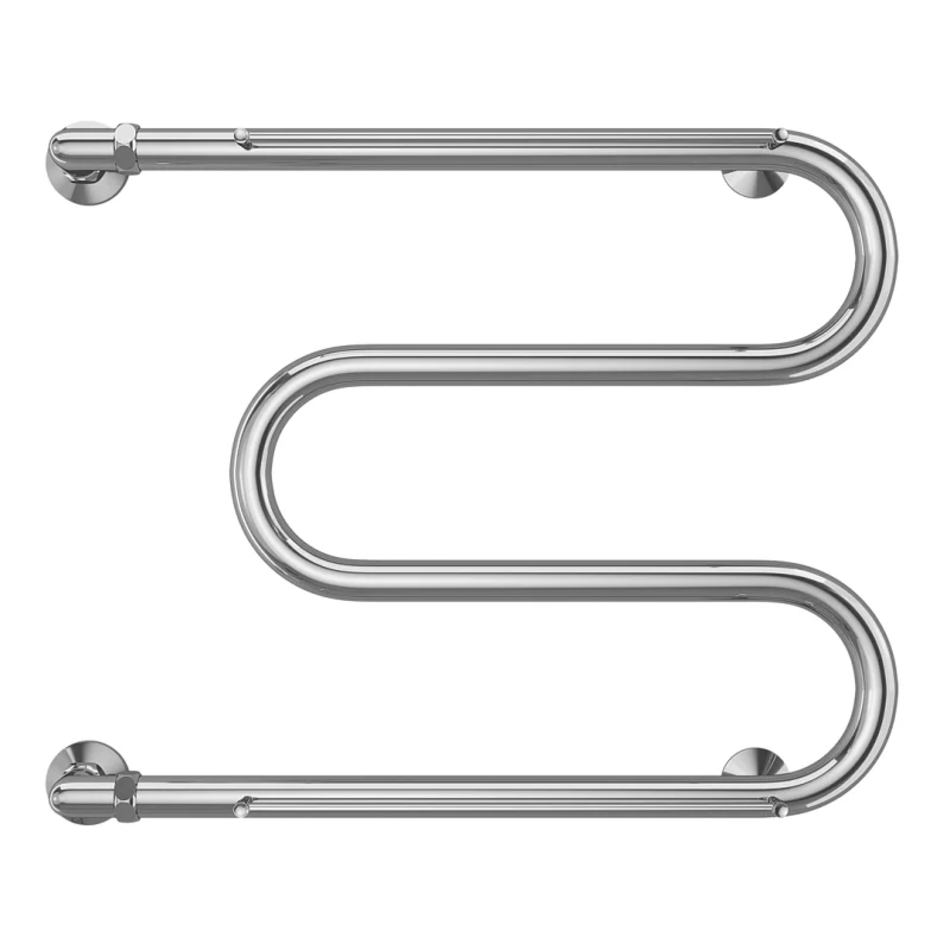 Полотенцесушитель водяной Terminus М-образный 4620768880391, ширина 50 см, высота 63 см, боковое подключение 60 см, 1 дюйм, с полкой, цвет нержавеющая сталь