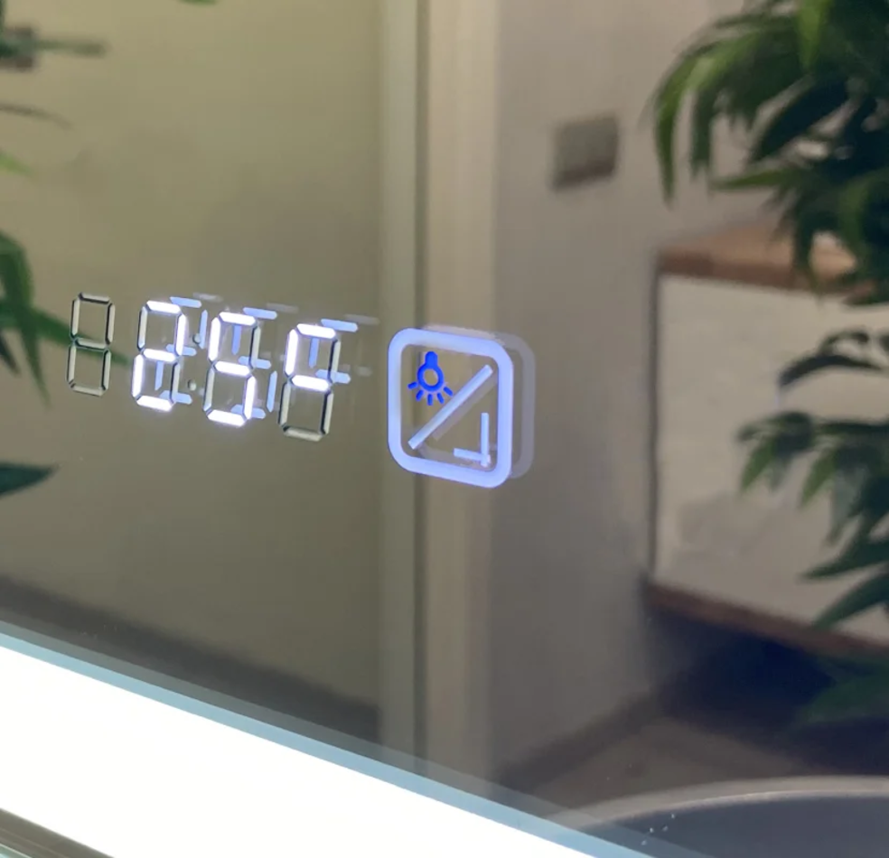 Зеркало Jorno Glass 100 см, Gla.02.92/W, с подсветкой, с часами, белый