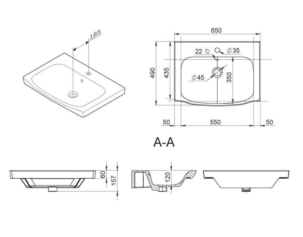 - Намеченные отверстия под смеситель: нет