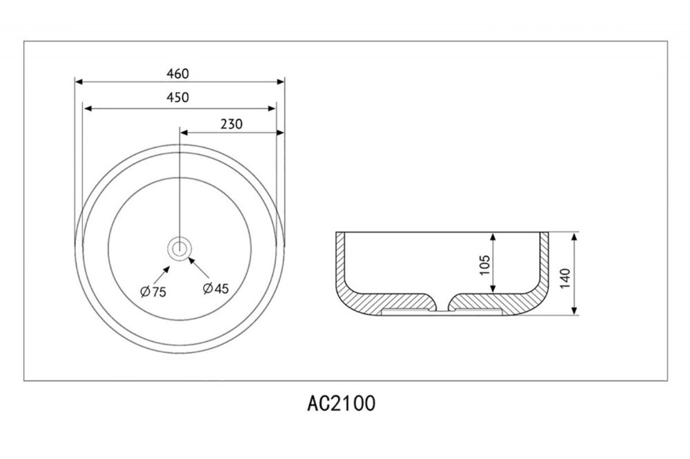Раковина Abber Bequem AC2100MG, накладная, 46 х 46 х 14 см, серая матовая