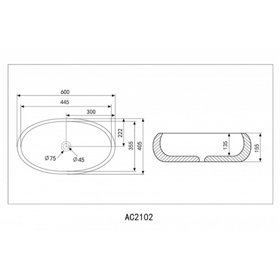 Раковина Abber Bequem AC2102, накладная, 60 x 40.5 x 15.5 см, белая