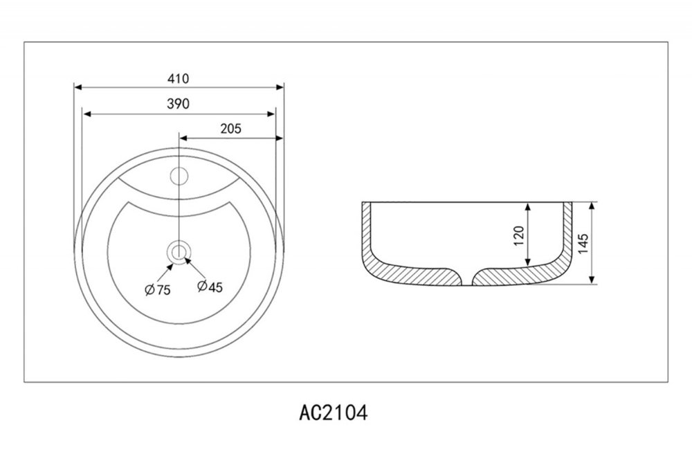 Раковина Abber Bequem AC2104, накладная, 41 х 41 х 14.5 см, белая