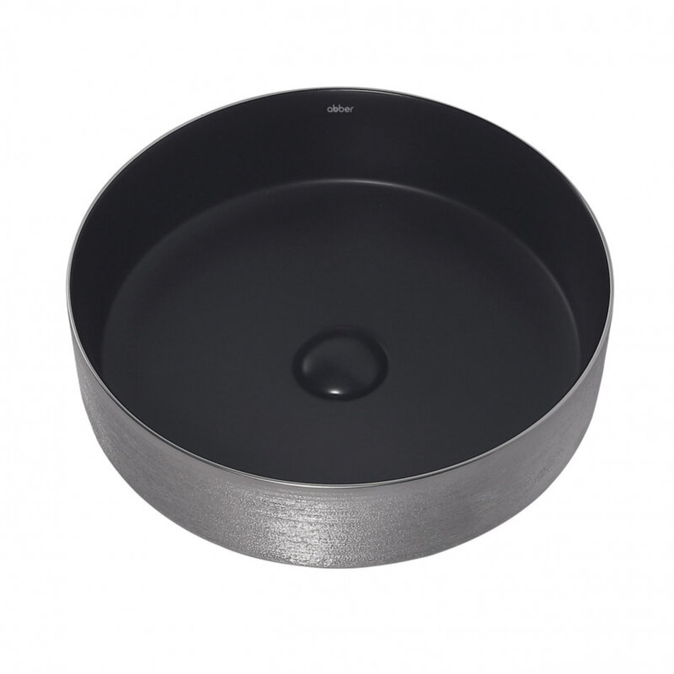 Раковина Abber Bequem 40 х 40 см, накладная, черный матовый, серебро, AC2109BS