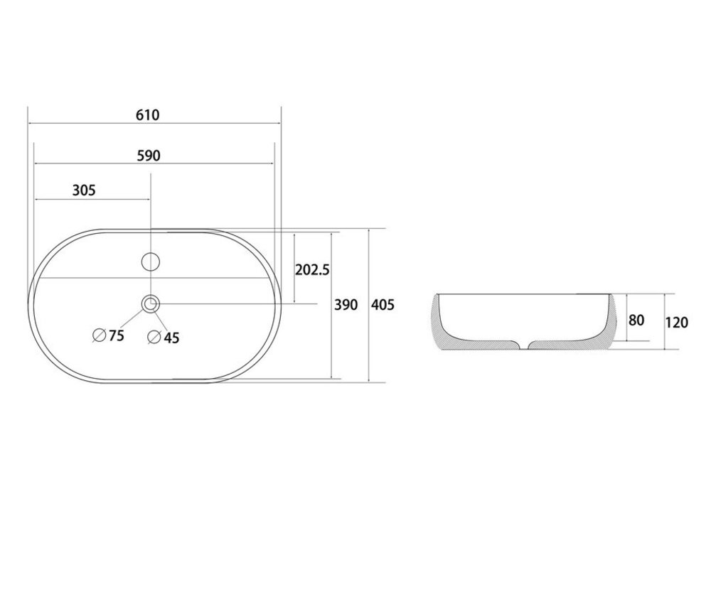 Раковина Abber Bequem AC2113, 61 х 40.5 х 12 см, накладная, белая