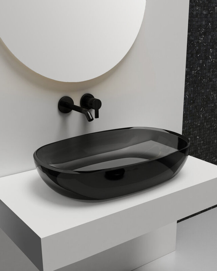 Раковина Abber Kristall AT2805Onyx, 60 х 40 см, накладная, прозрачная, черная