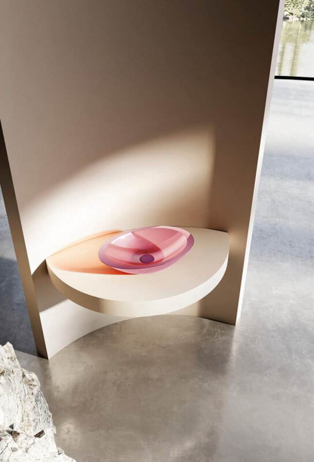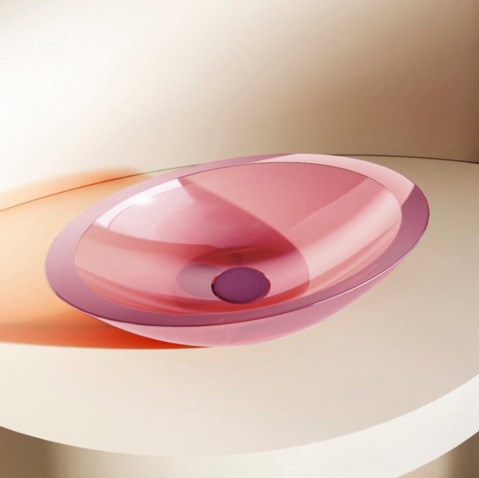 Раковина Abber Kristall AT2810Koralle, 60 х 35 см, накладная, прозрачная розовая