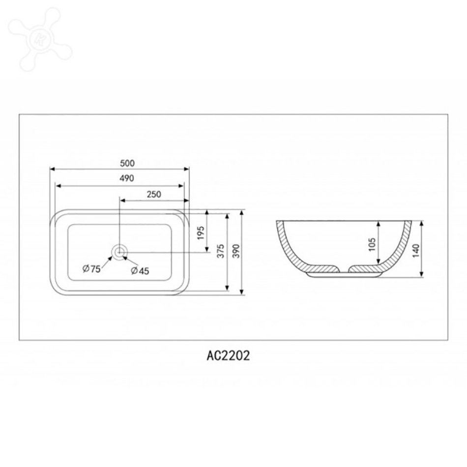 Раковина Abber Rechteck AC2202, накладная, 50 х 39 х 14 см, белая